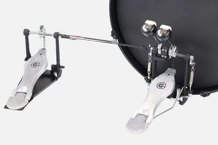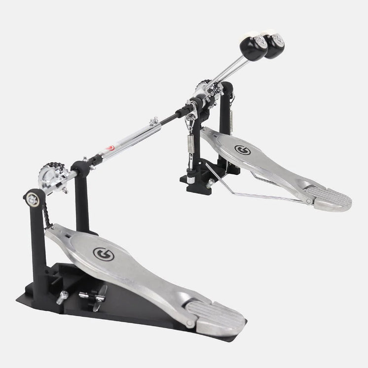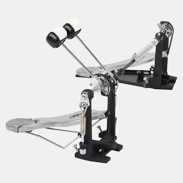 Speed meets stability and simplicity on this single chain drive double pedal model that features a new fast touch G Style pedal board and dual surface 90gm weighted beater. The all-metal cast frame with a textured black finish and a steel rock plate on the left pedal combine to form a stable and solid feel under your feet. The adjustable spanner allows you to set the reach of the left pedal for the perfect setup.